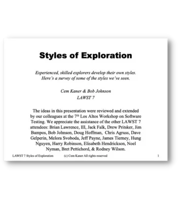 Styles of Exploration, by Cem Kaner and Bob Johnson, is a recommended reading from the BBST® Test Design course.